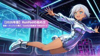 RunPodのアカウント登録・クレジット購入・Pod立ち上げ・ComfyUI起動まで画面スクショつきで丁寧に解説。GPU不要でブラウザだけでAI画像生成を始められるクラウドGPUサービスの使い方を初心者向けにまとめました。